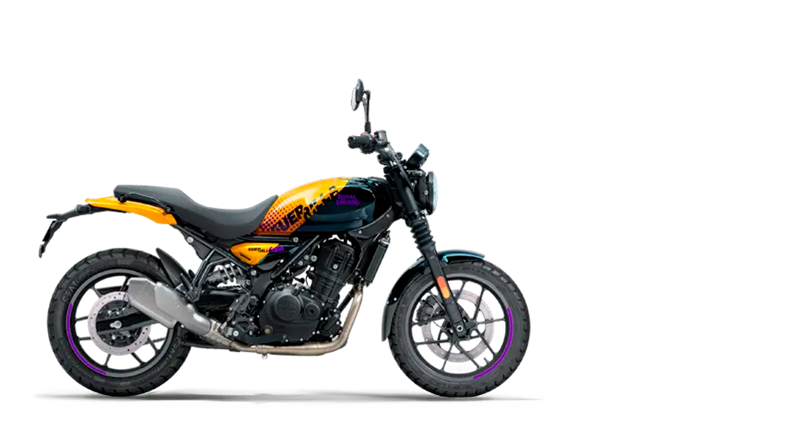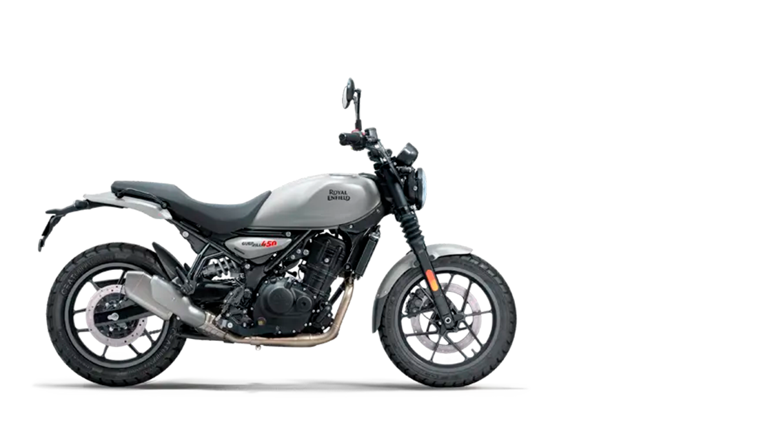 A Royal Enfield Guerrilla 450 é a roadster que une estilo, agilidade e autenticidade. Criada para a cidade, mas sempre pronta para a estrada, ela traz design minimalista, linhas modernas e a força do novo motor Sherpa 450. Com posição de pilotagem confortável e visual marcante, a Guerrilla representa uma nova geração: uma moto versátil, ousada e feita para quem vive a liberdade sobre duas rodas todos os dias.